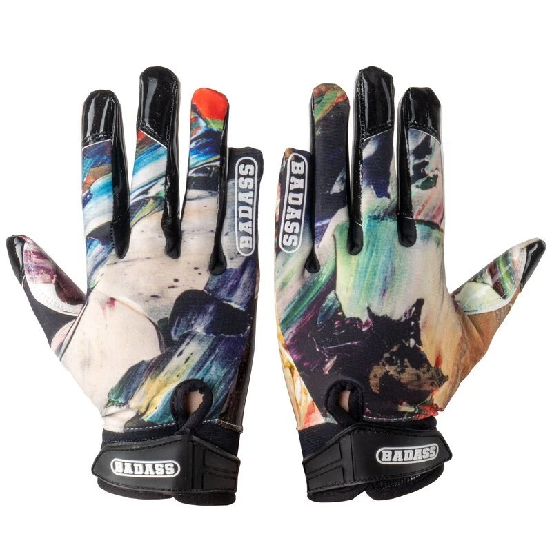 Böse Zungen mögen vielleicht behaupten das Sport nicht viel mit Kunst zu tun hat, aber Kunst kommt von Können, man kann sich durch beides ausdrücken und es erfordert Arbeit und Hingebung. Wenn Du einfach beides magst, dann wähle den wilden Pinselstrich von Art Style. In Sachen Qualität und Komfort stehen die BADASS Designes anderen Marken in keiner Weise nach. Das flexible Obermaterial sorgt für eine gute Passform und transportiert den Schweiß, so bleiben Deine Hände trockener. Das dünne Silikonmaterial auf der Handinnenfläche gibt Dir einen super Grip. Daher sind sie nicht nur optisch, sondern auch praktisch ein passender Spielgefährte.