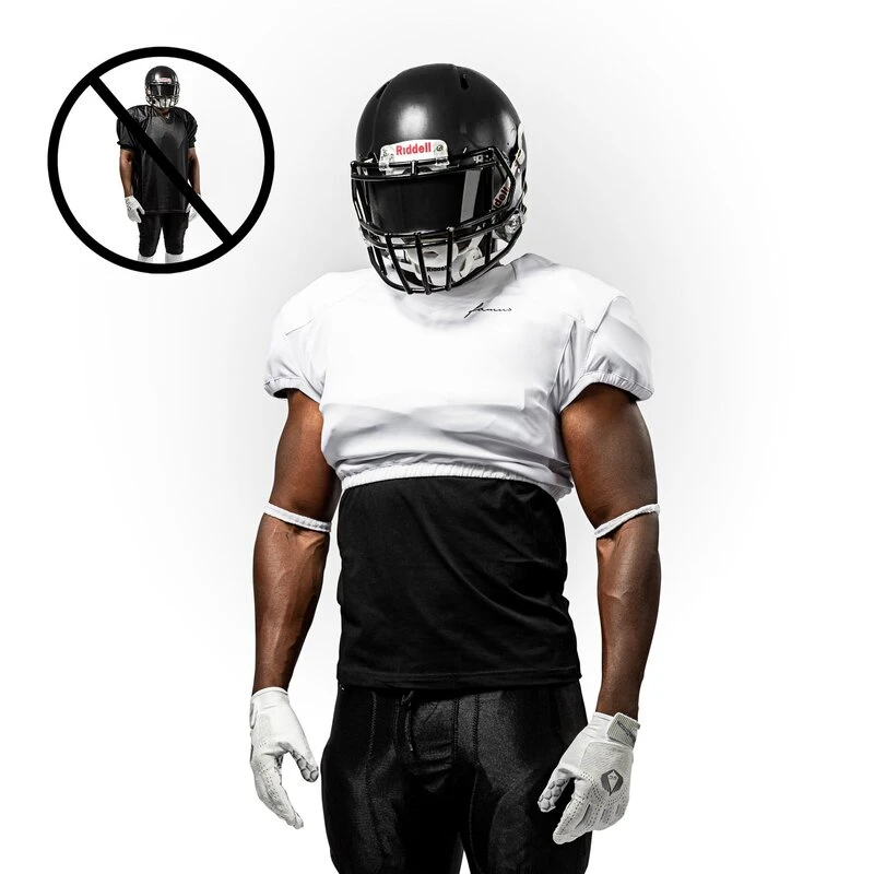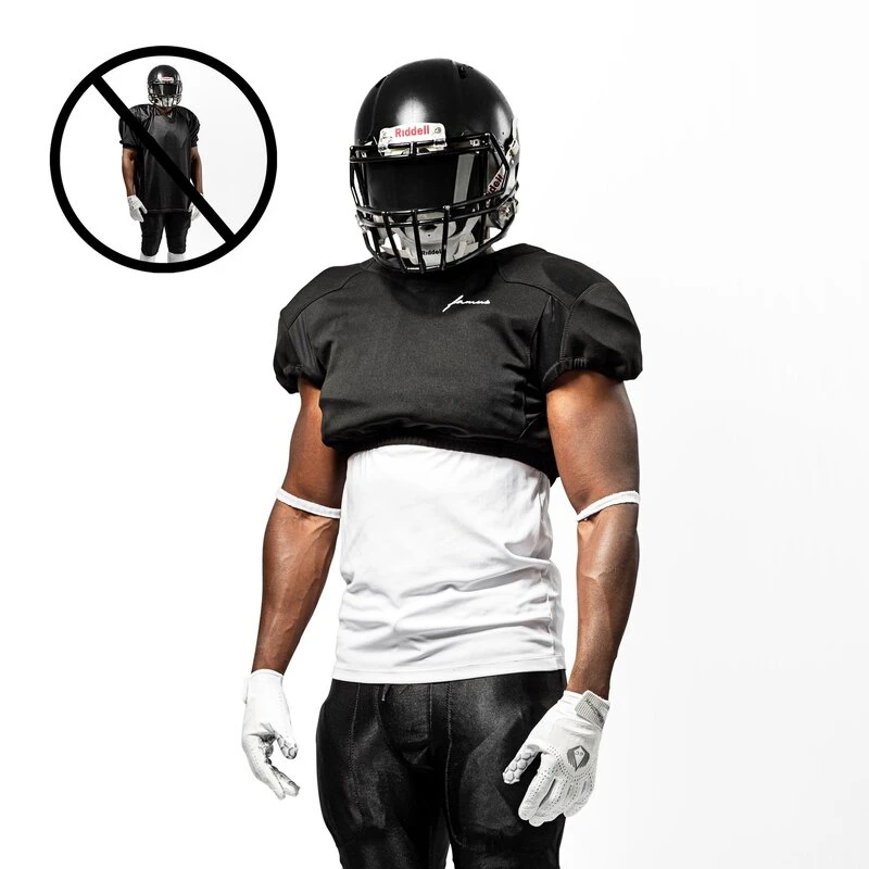 Das American Football Shirt von Famus stellt mal etwas besonderes dar. Du sollst ja nicht umsonst für Dein Sixpack trainiert haben. Einige Spieler haben sich schon lange solch ein spezielles Jersey gewünscht. Es ist extrem kurzes Shirt. Es sitzt knapp unter dem Shoulderpad und lässt zusammen mit den weit geöffneten Armausschnitten totale Bewegungsfreiheit zu. Also, wenn du sowieso schon immer am hochkrempeln deines Shirts warst oder Dir so etwas gefällt, dann hast Du hier ein schon fertiges Produkt für ein noch luftigeres Training.