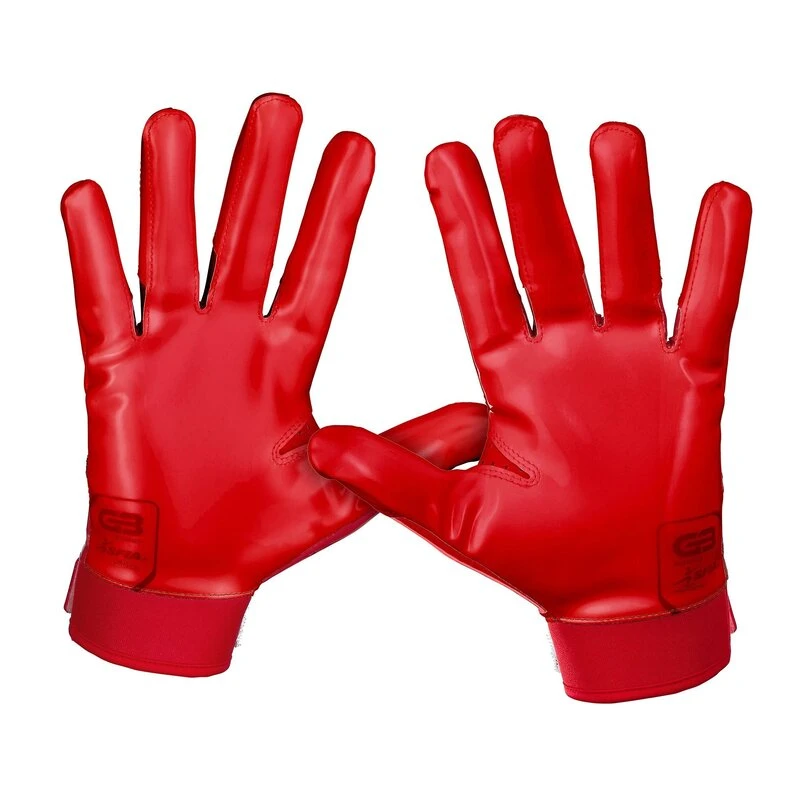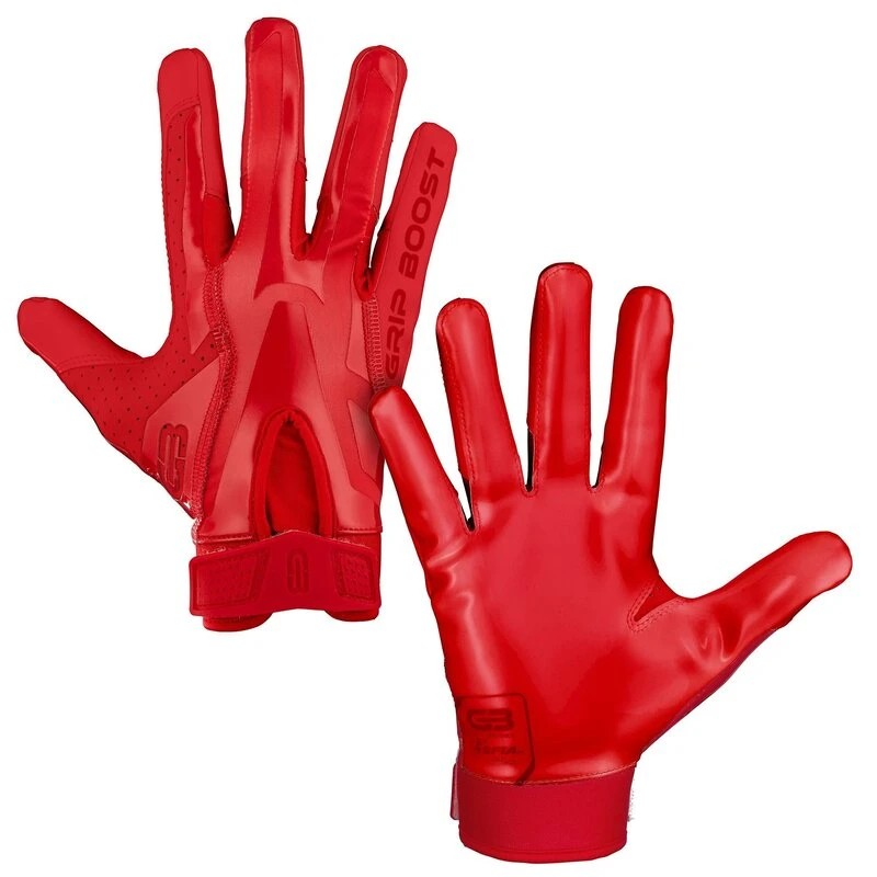 Die Grip Fläche lässt Dich in nahezu jeder Lage die Bälle fangen. Der Handrücken ist aus dehnbaren Material, welches teilweise durch Silicon verstärkt wurde. Dies gibt nicht nur Stabilität, sondern auch dieses tolle Aussehen. Wer schmale bis normal breite Hände hat, kann diese Receiver Gloves leicht überziehen. Die Handinnenfläche ist in der gleichen Farbe wie der Rest des Handschuhs. Die Marke Grip Boost ist sehr beliebt. Besonders im Zusammenhang mit dem Grip verstärkenden Gel sind diese Handschuhe bestens geeignet.