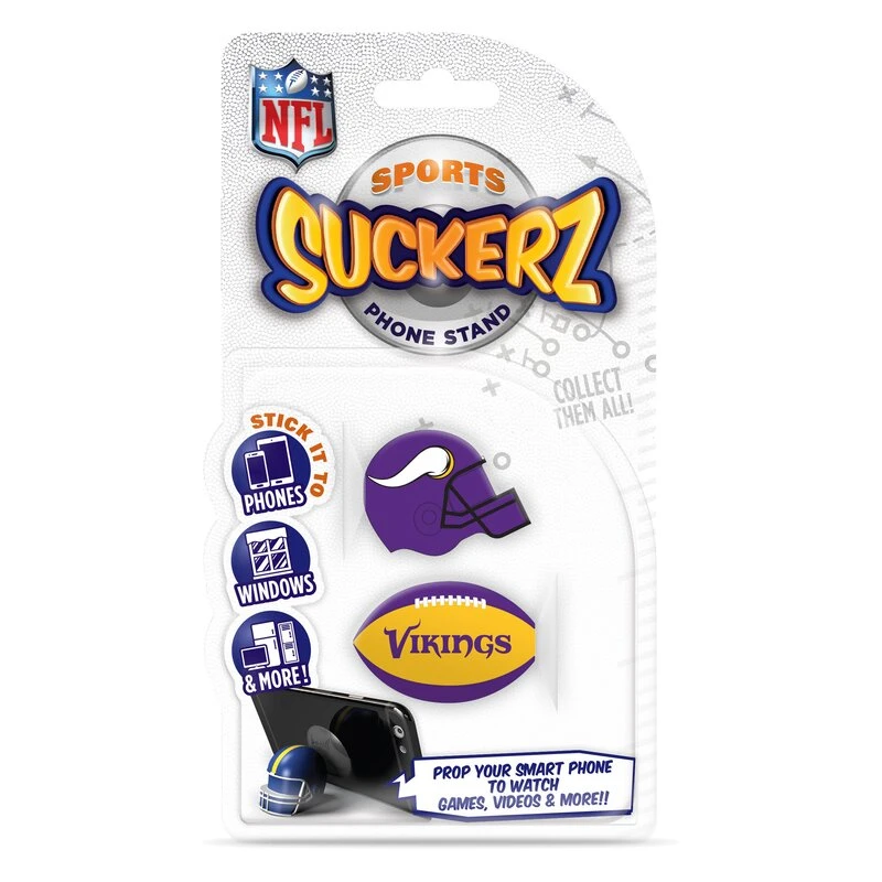 Mit den Minnesota Vikings Suckerz hast Du immer eine Halterung für Dein Handy/Tablet parat!Die Minnesota Vikings Suckerz sind toll ausgeknobelte Halterungen mit Saugnäpfen für Dein Handy oder Tablet. Wenn Du unterwegs bist, kannst Du die kleinen Helferlein auch mitnehmen. Befestige die Suckerz mittels Saugnapfes an der Rückseite Deines Handys und schon kannst Du es aufstellen, ohne das es umfällt. Somit kannst Du super Videos oder Filme schauen, ohne lästiges wegrutschen des Handys. Die Suckerz kannst Du auch einfach an eine glatte Fläche festsaugen, um zum Beispiel Deinen Kühlschrank zu verzieren.