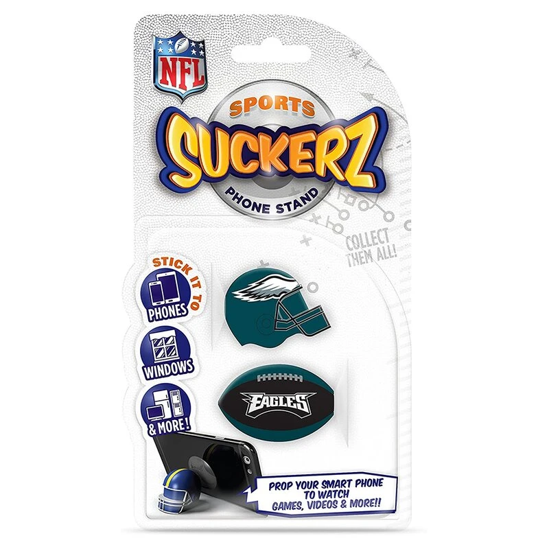 Mit den Philadelphia Eagles Suckerz hast Du immer eine Halterung für Dein Handy/Tablet parat! Die Philadelphia Eagles Suckerz sind toll ausgeknobelte Halterungen mit Saugnäpfen für Dein Handy oder Tablet. Wenn Du unterwegs bist, kannst Du die kleinen Helferlein auch mitnehmen. Befestige die Suckerz mittels Saugnapfes an der Rückseite Deines Handys und schon kannst Du es aufstellen, ohne das es umfällt. Somit kannst Du super Videos oder Filme schauen, ohne lästiges wegrutschen des Handys. Die Suckerz kannst Du auch einfach an eine glatte Fläche festsaugen, um zum Beispiel Deinen Kühlschrank zu verzieren.