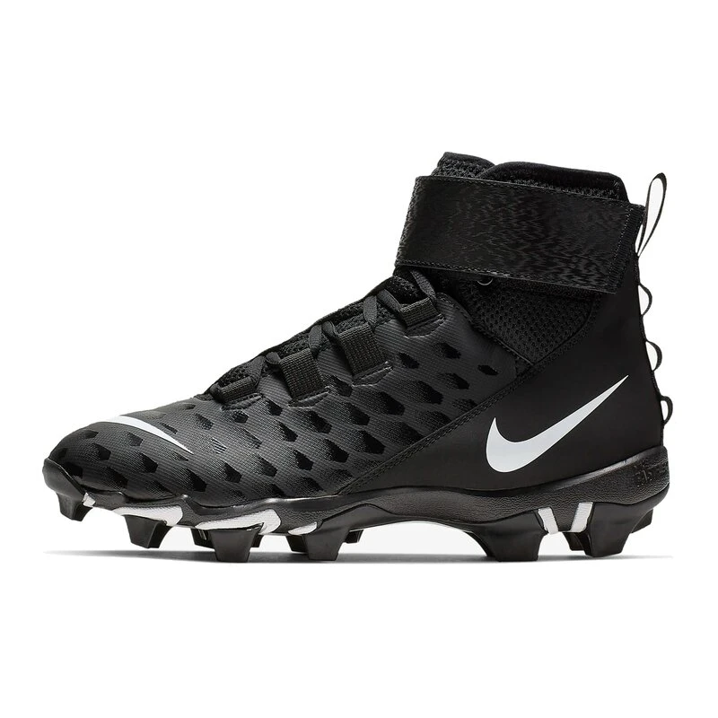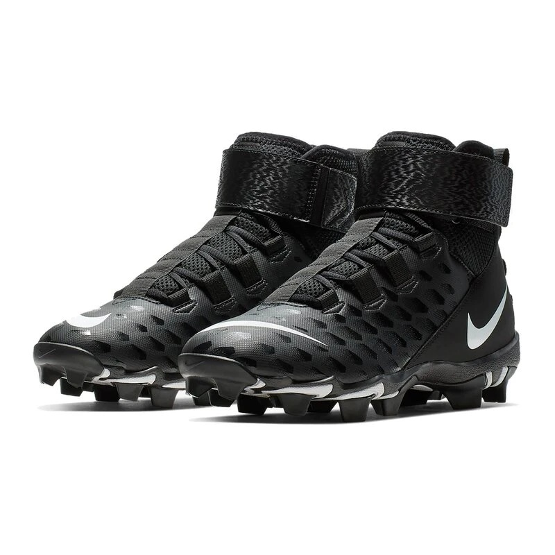 Der Nike Force Savage 2 Shark Hi Footballschuh ist für Rasen und Kunstrasen geeignet. Der Footballschuh aus Kunstleder und kann durch seine Leichtigkeit deine Geschwindigkeit verbessern. Die Nike Fastflex Gummi-Laufsohle mit der super Stollen-Konstellation ermöglicht Dir eine natürliche Abrollbewegung und Deine Beweglichkeit für schnelle Richtungswechsel zu erhöhen. Die Stollen graben sich tief in den Untergrund ein und bieten Dir einen festen Stand in der Line. Er ist sehr leicht und hat einen super Tragekomfort. Durch seine Höhe schützt sowie stabilisiert er Deine Knöchel und Gelenke. Die Laschen an Zunge und Ferse erleichtern Dir das An- und Ausziehen. Der breite Klettverschluß passt sich durch ein eingearbeitetes Gummiband sehr gut an. Das Mesh Material an der Zunge lässt eine gute Luftzirkulation zu.