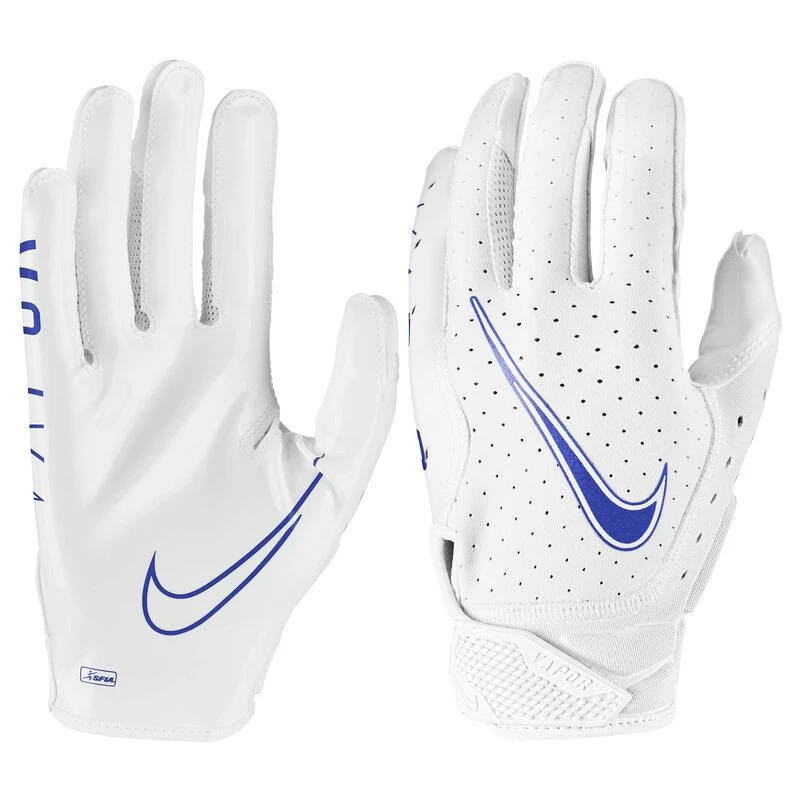 Die Vapor Jet 6.0 White Pack Edition Receiver Handschuhe sind super dehnbar und passen sich daher gut an. Mit diesen Handschuhen kannst Du sauber und blitzschnell die Bälle fangen, da sie eine super klebrige Handinnenfläche haben. Luftlöcher sorgen für gute Transpiration, sodass die Feuchtigkeit besser verdunstet. Material und Schnitt wurden verändert um Dir mehr Flexibilität in den Fingern zu geben.