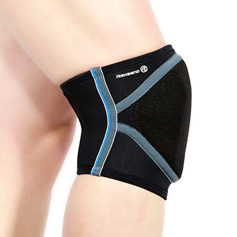 Durch den atmungsaktiven Stoff und die Plastiksplinte des Kniepolsters wird das Knie noch effektiver in Form gehalten.