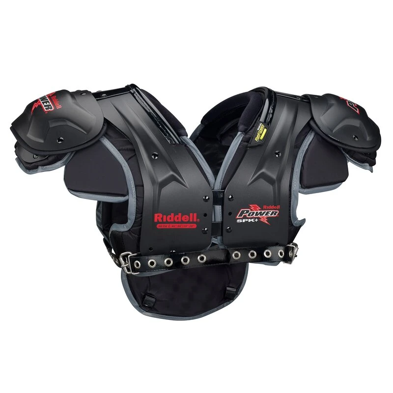 Das top ausgestattete Schulterpad von Riddell, das Power SPK+ RB/DB, im flachen Pad Design und mit enormer Bewegungsfreiheit weist einiges an Highlights auf. Es verfügt über die Rip Kord Technology für schnelleres Öffnen bei Verletzungen, sowie das STAC Schultersystem für besseren Schutz der Schultern. Die abnehmbare Backplatte, das Air Management Liner Luftkammern System für die Kräfteverteilung beim Aufprall und abnehmbare, verstellbare Polster sprechen genauso für dieses Pad.