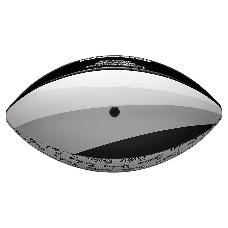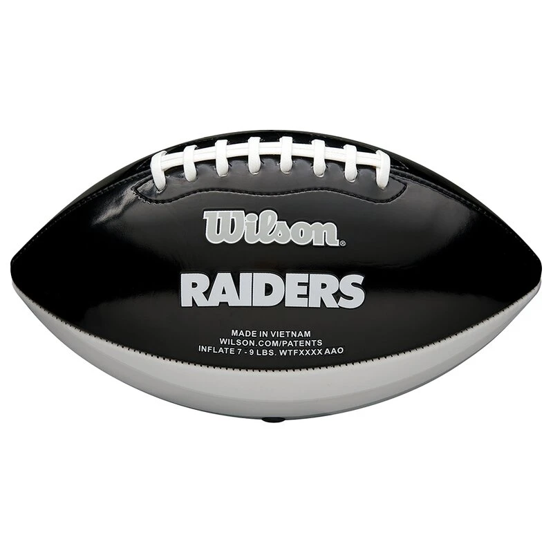 Der NFL Peewee Las Vegas Raiders Football ist in den Teamfarben der Las Vegas Raiders gestaltet. Das Logo, sowie auch der Name der Raiders ist diesmal geprägt, statt bedruckt. Dies sorgt für ein wundervolles Design was seinesgleichen sucht. Der Peewee Football ist aus einem Glattkunstleder und verleiht dem Football einen einzigartigen Glanz. Durch die Peewee Größe ist der Football sehr gut geeignet ihn auszustellen oder mit ihm zu spielen. Er ist somit nicht nur für die jüngeren Fans ein treuer Begleiter. Der Wilson NFL Peewee/ Kindergröße Football wird ab einem Alter von 6 Jahren empfohlen.